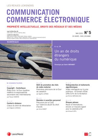 Née avec l’explosion d’Internet il y a plus de dix ans, la revue analyse tous les aspects juridiques de la communication quel qu’en soit le support (la presse, l’audiovisuel, l’informatique, les télécommunications et réseaux, dont Internet, sous l’angle des droits de la propriété intellectuelle, des personnes, de la concurrence, de la protection des données, des contrats, du droit social et du droit fiscal). Outre des veilles, l’actualité juridique est traitée, sous forme d’études et de commentaires de jurisprudence par des auteurs renommés. Des chroniques « Un an de… » recensent toute l’actualité de l’année écoulée sur une thématique précise. Des fiches pratiques, rédigées par des praticiens, développent chaque mois un point de pratique contentieuse et un point de pratique contractuelle dans des domaines variés.